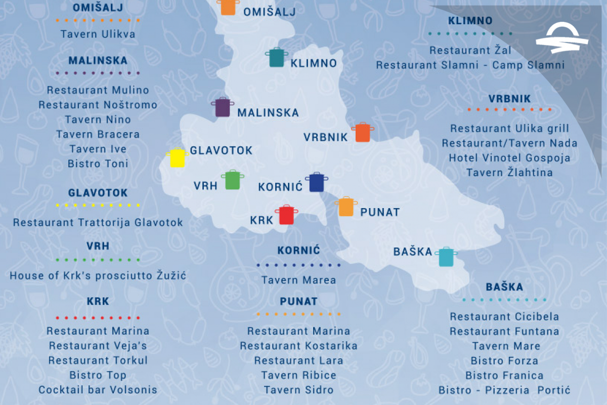 Krčki restorani, njih trideset po cijelom otoku, pozivaju sve ljubitelje otočke janjetine da im se pridruže i uživaju u ovoj jedinstvenoj delikatesi pripremljenoj na različite načine. Bit će Vam poslužena promotivna jela poput pečene janjetine s krumpirom, janjetinom na žaru, roštilja na drvenom ugljenu ili, ako volite jesti sa žlicom - janjeći paprikaš "alla veneziana" i još mnogo različitih načina s domaćim kruhom, knedlom, palentom ili poznatim šurlicama Krka. Postoje brojni gastronomski razlozi za posjećivanje otoka Krka.