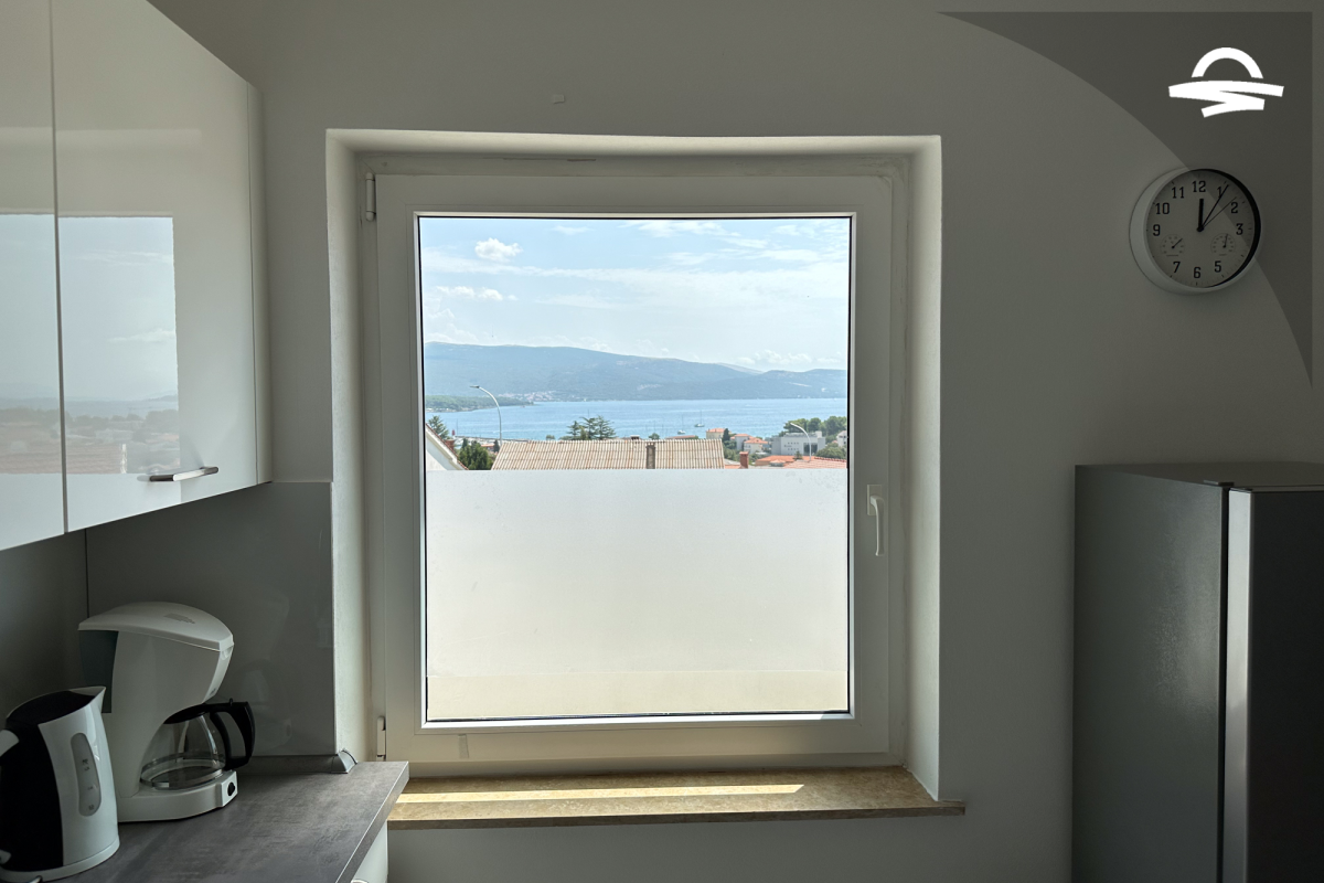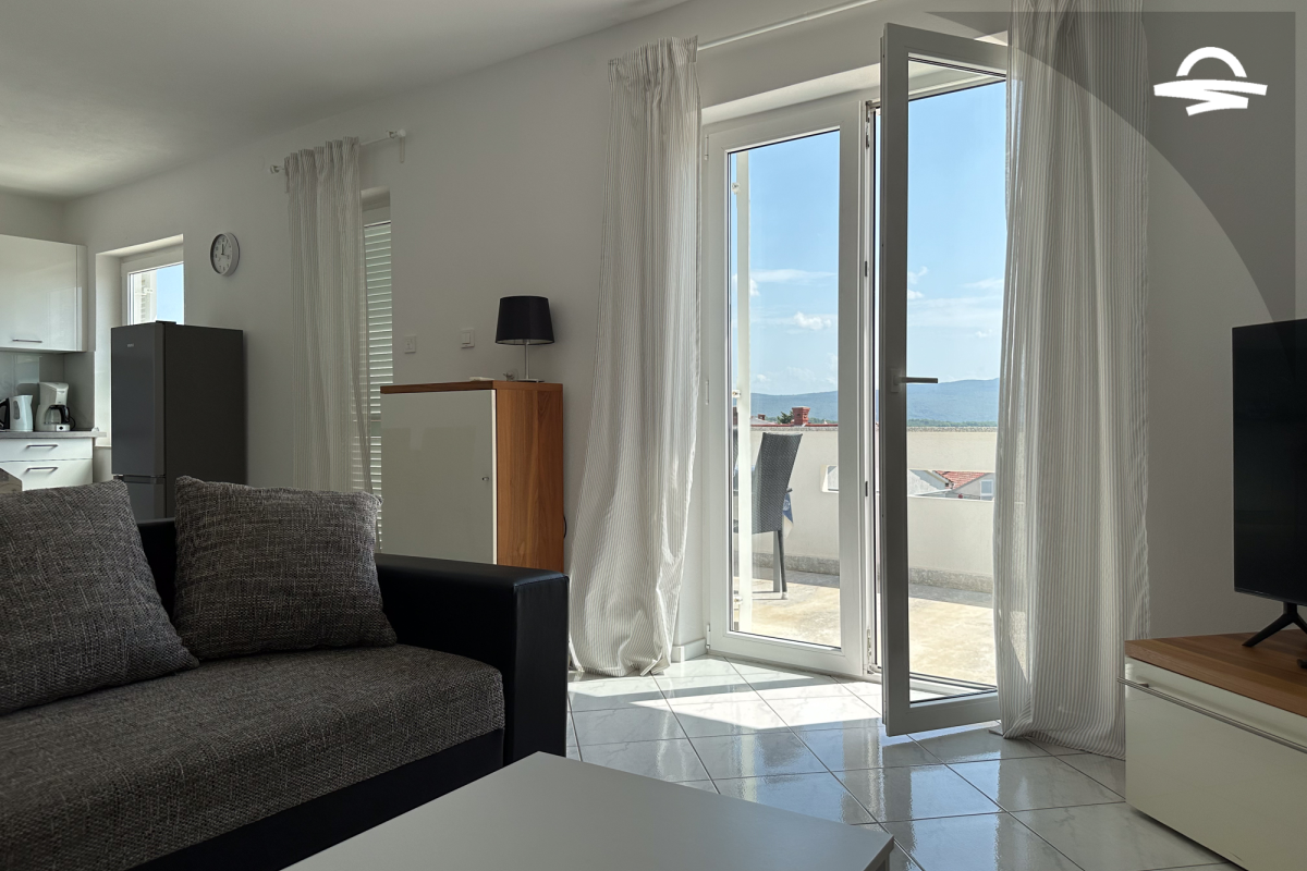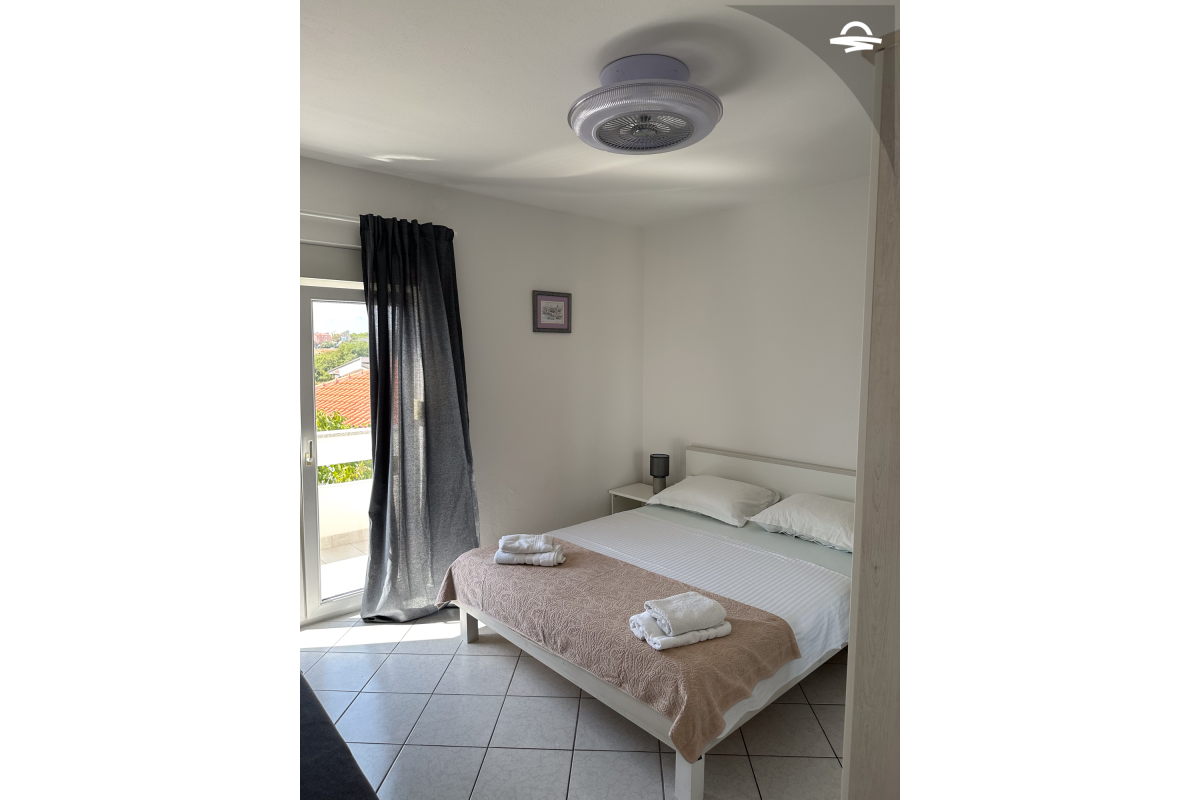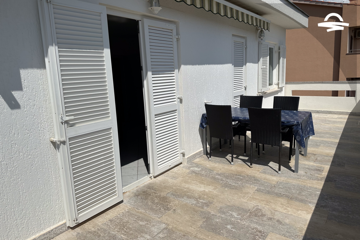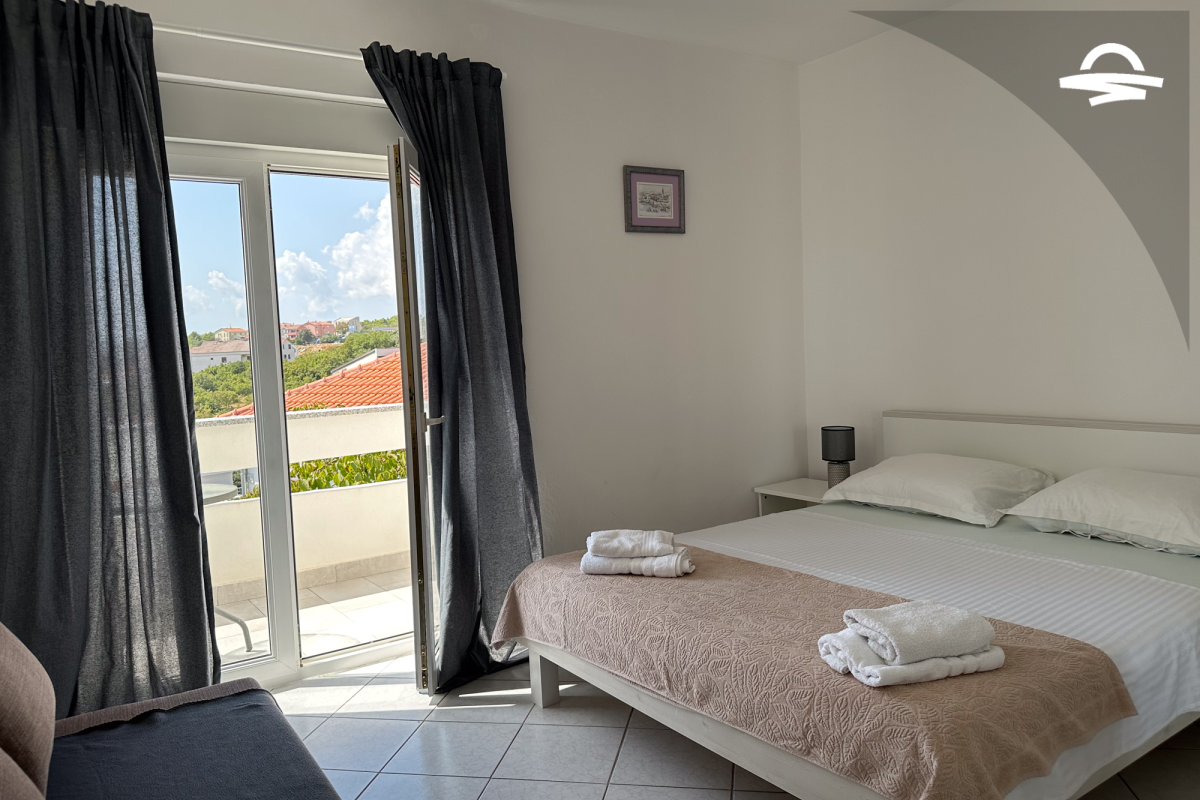 Apartman Barica nalazi se na drugom katu obiteljske kuće sa čijeg se balkona pruža lijepi pogled na more. Apartman ima 70 m2, a sastoji se od kuhinje i dnevnog boravka, jedne trokrevetne sobe i jedne sobe sa bračnim krevetom, jedne kupaonice sa kadom, a druge sa tušem, te balkona od 16 m2. Ovaj apartman nudi smještaj za 4 do 5 osoba.