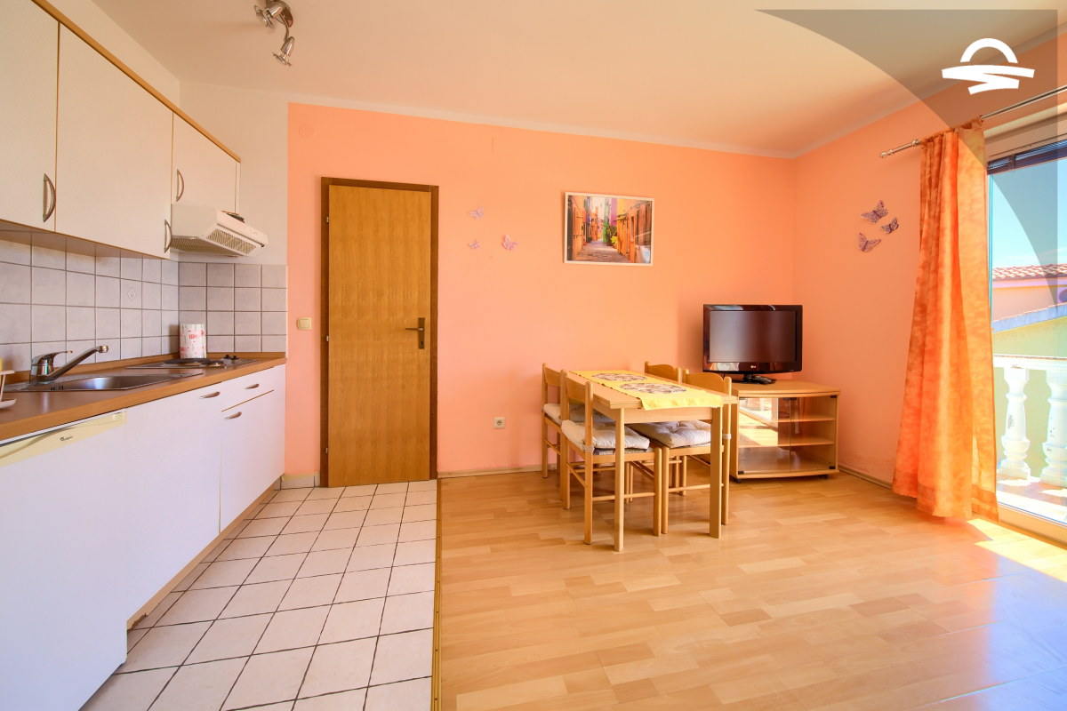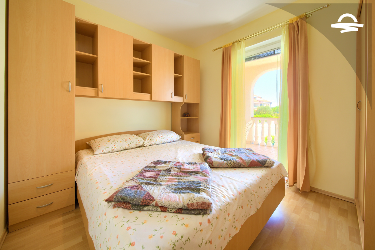 Jednostavno uređen, ali šarmantan apartman Henrik nalazi se na drugom katu stambene zgrade. Apartman ima 35 m2, a sastoji se od kuhinje i dnevnog boravka, jedne spavaće sobe sa bračnim krevetom, kupaonice sa tuš kabinom, te dva balkona. Jedan balkon od spavaće sobe, a drugi sa prekrasnim pogledom na more iz dnevnog boravka. Apartman može smjestiti 2 do 3 osobe.