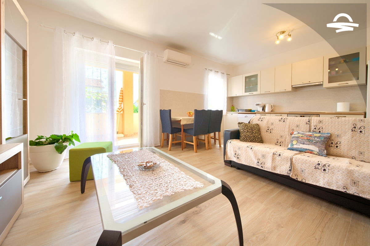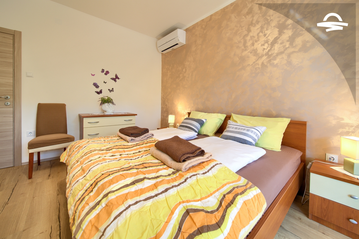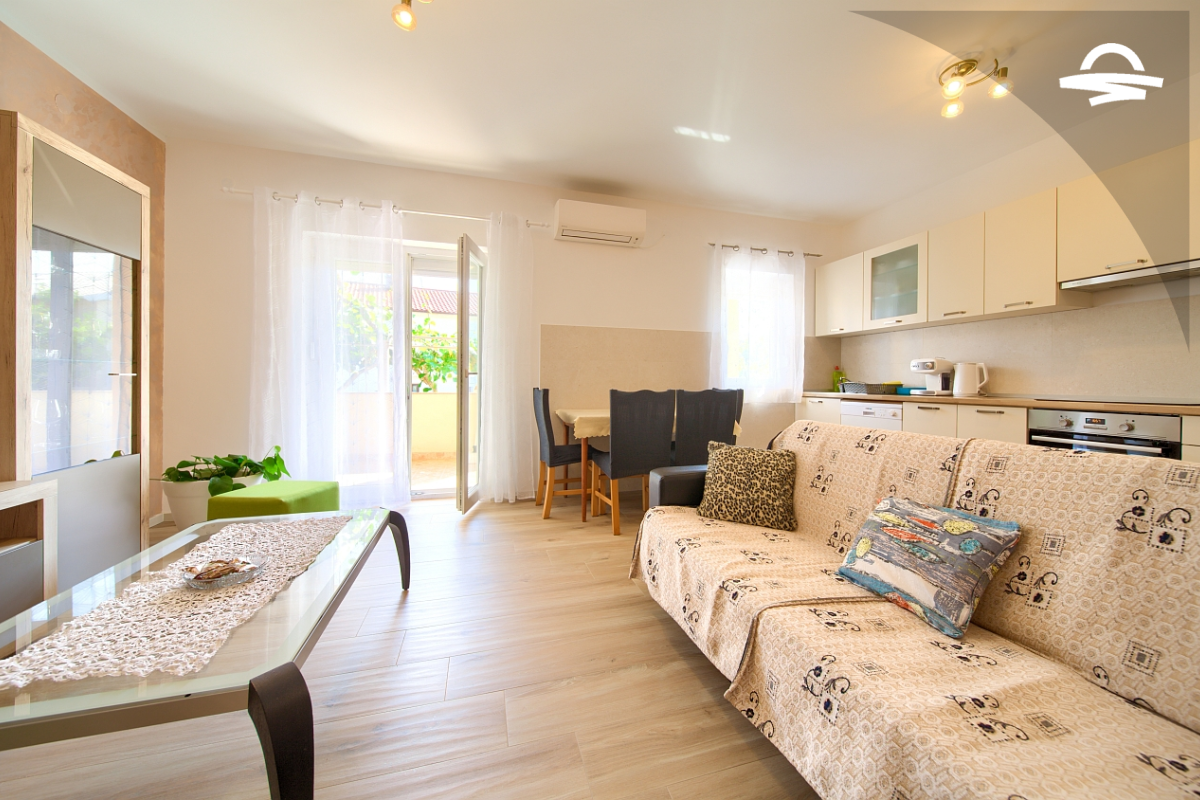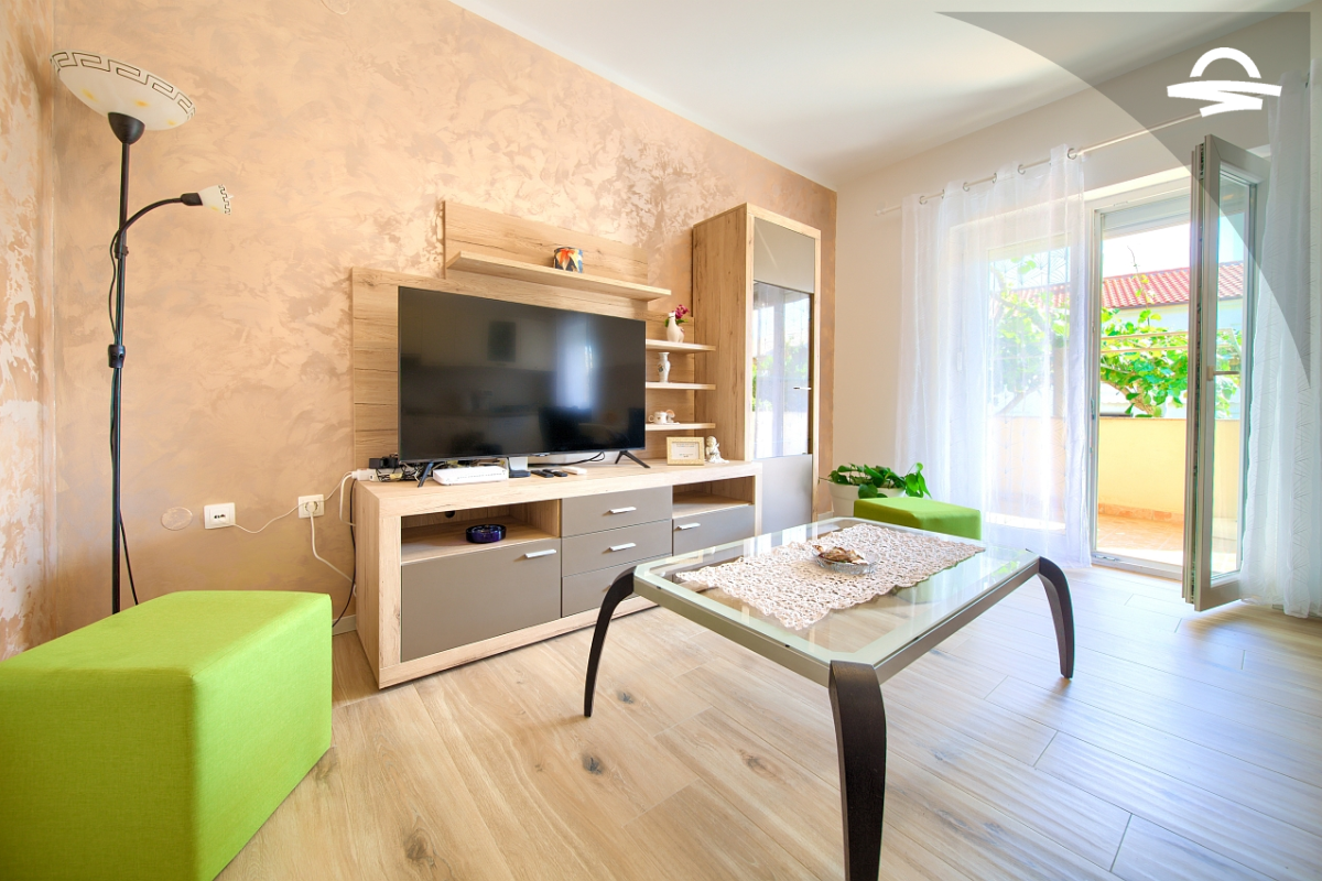 Dobro opremljen apartman Petra nalazi se u prizemlju obiteljske kuće. Apartman je idealan za 4 osobe i ima 60 m2. Sastoji se od renovirane kuhinje i dnevnog boravka, dvije dvokrevetne spavaće sobe, kupaonice s tušem i dodatne kupaonice s wc-om. Za popodnevne sastanke i razgovore na raspolaganju je i prostrani balkon s drvenim namještajem.