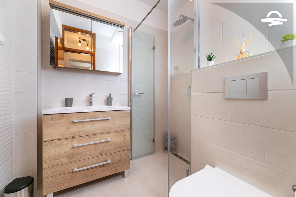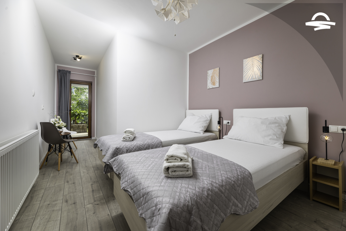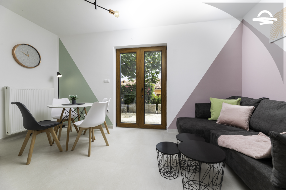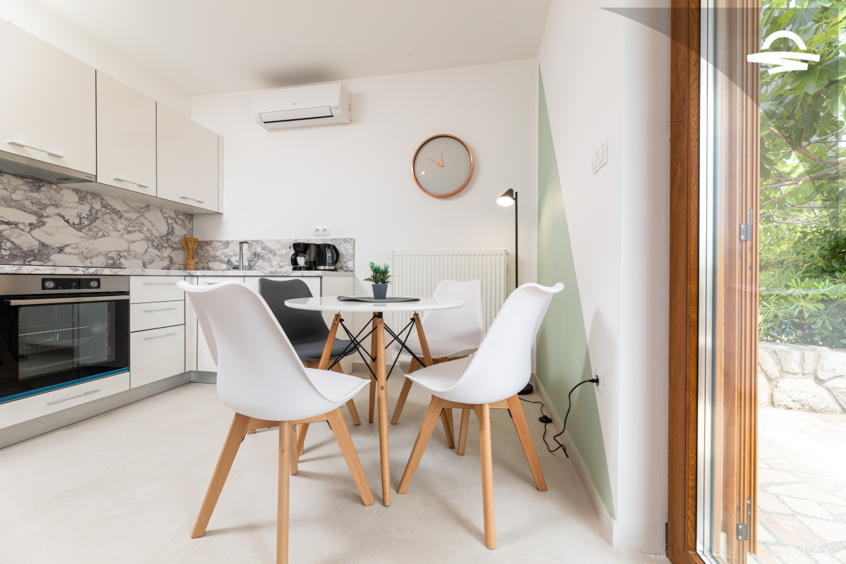 Jednostavno uređen ali udoban apartman Vjeko 1 smješten je u prizemlju obiteljske kuće. Apartman ima 50 m2 i može se smjestiti 4 do 5 osoba. Sastoji se od kuhinje i denevnog boravka, spavaće sobe s bračnim krevetom, spavaće sobe s dva odvojena kreveta, kupaonice s tuš kabinom i terase.
