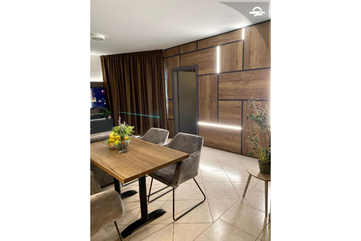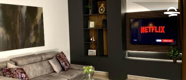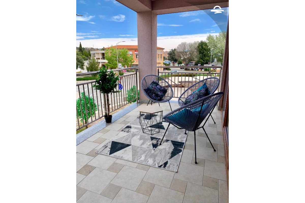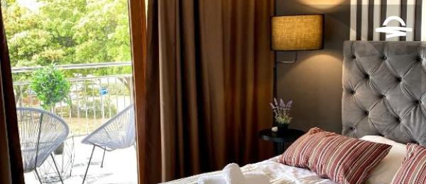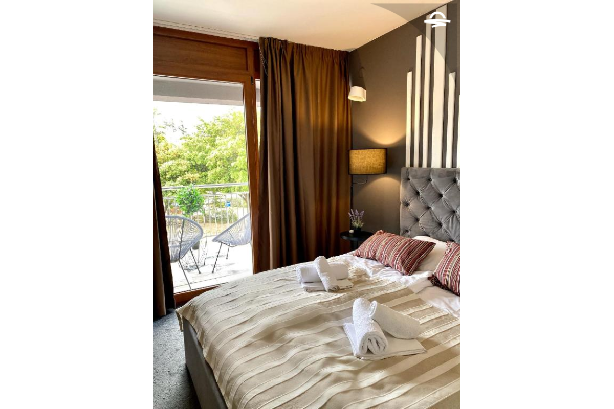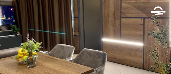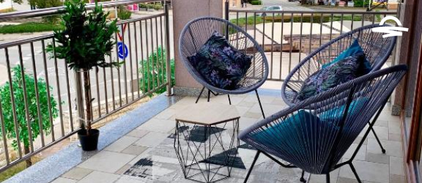 Moderan prostran apartman sa dnevnim boravkom, spavaćom sobom, kuhinjom, kupaonicom i balkonom.