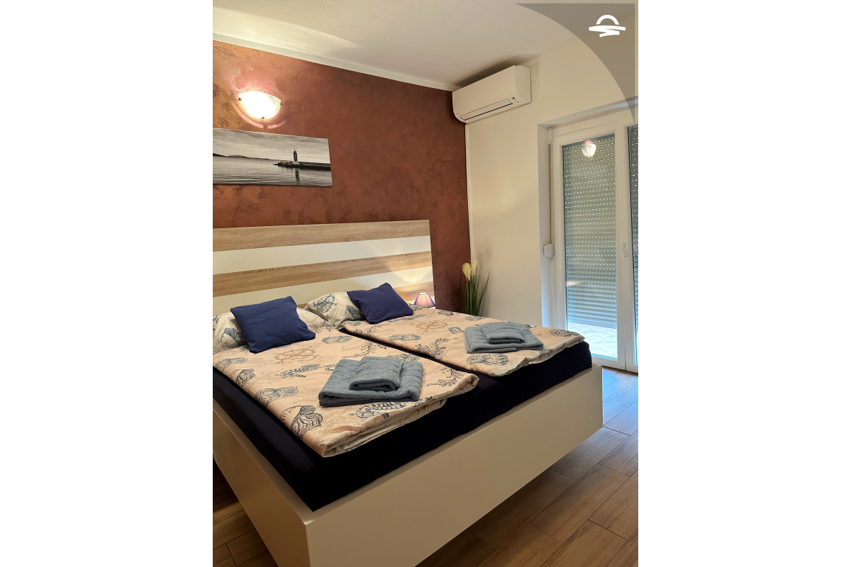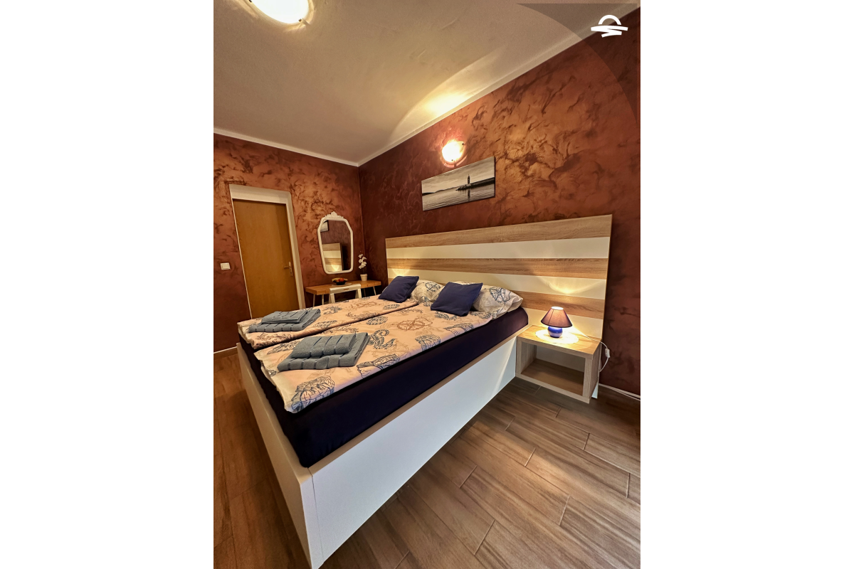 Nedavno obnovljena dvokrevetna soba Petra 2 za dvije osobe, nalazi se na prvom katu kuće i ima oko 20 m2. Soba ima vlastitu kupaonicu s tušem i privatni balkon.