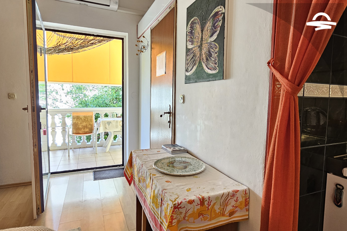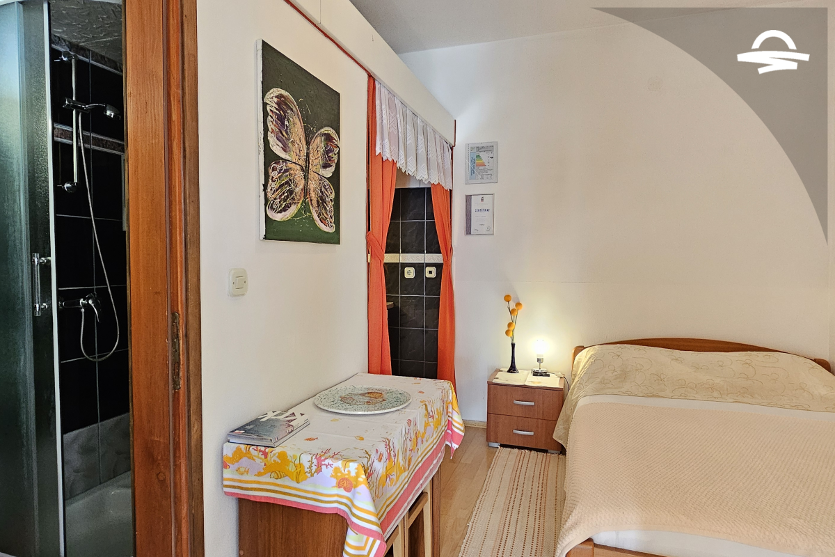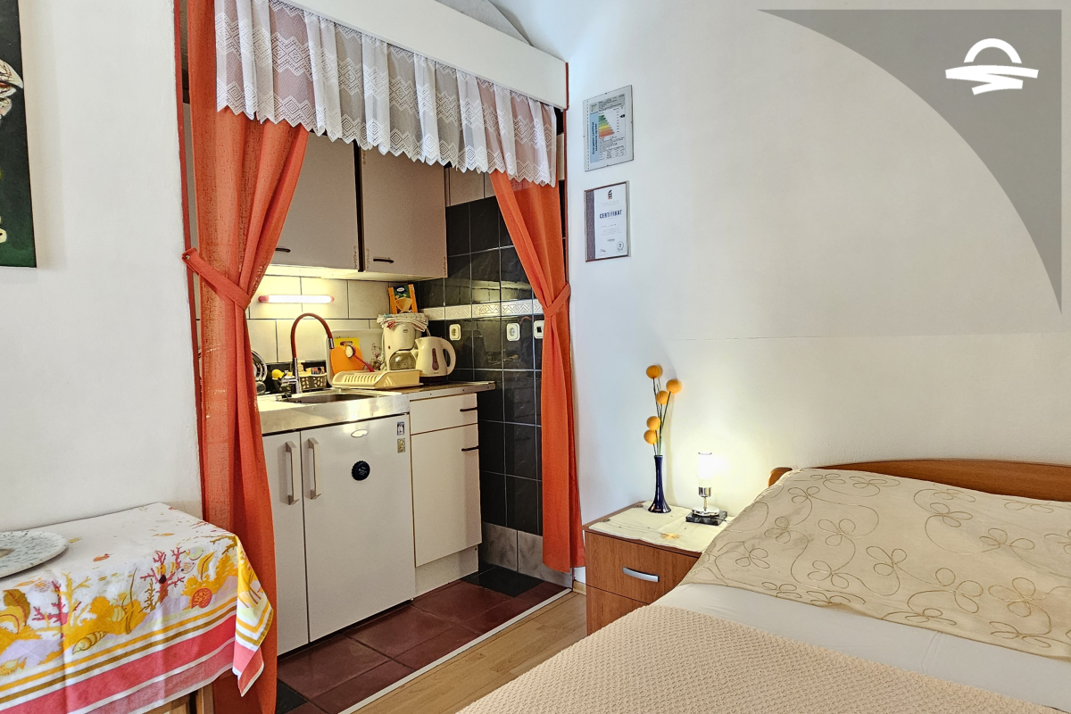 Studio Marino 1 nalazi se u prizemlju obiteljske kuće i prostire se na 30 m2. Idealan je za 2 osobe, a raspolaže dobro opremljenom kuhinjom i spavaćom sobom koje se nalaze u jednoj prostoriji, kupaonicom sa tuš kabinom i terasom.