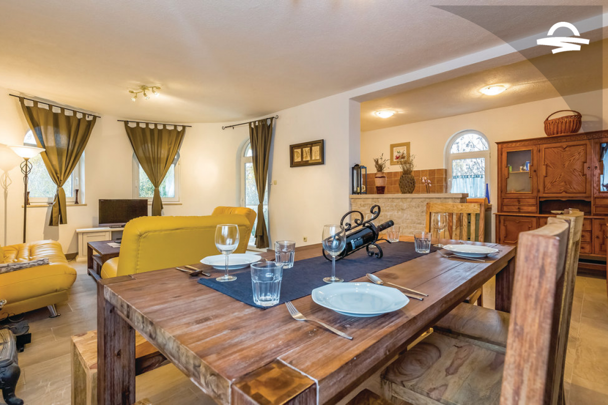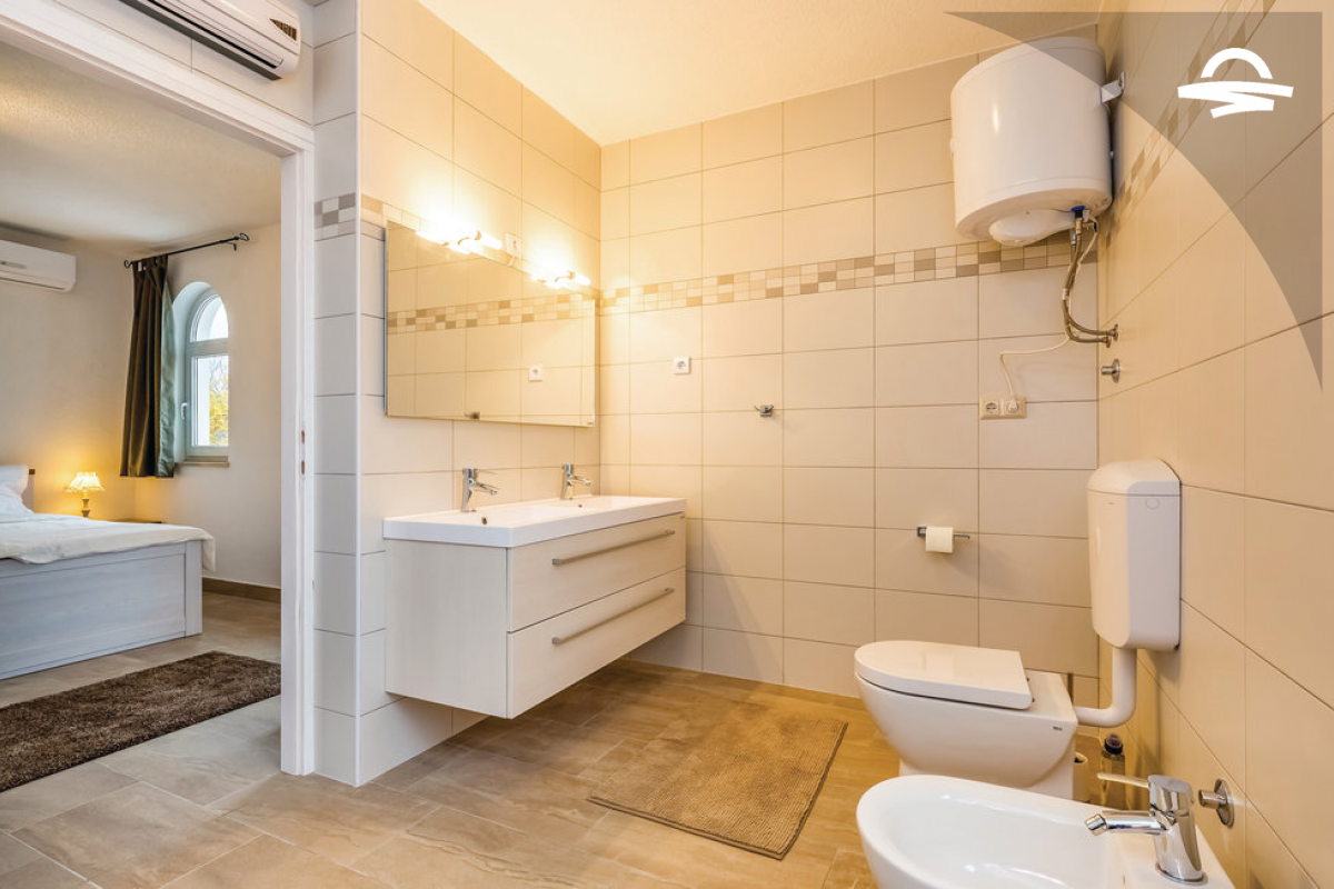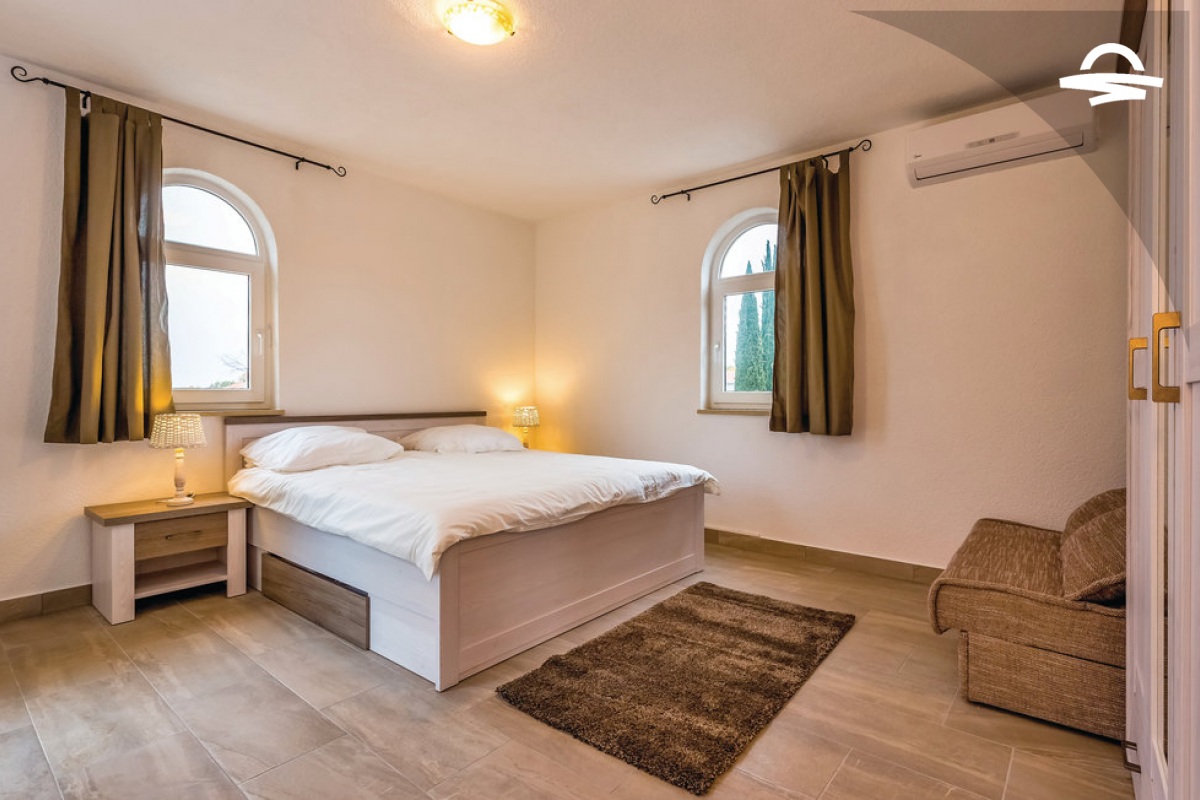 Moderna i ukusno uređena vila Barusici ima 120 m2, a prostire se na dvije etaže. Ova prekrasna kuća sastoji se od kompletno opremljene kuhinje i dnevnog boravka, tri spavaće sobe sa bračnim krevetima, tri kupaonice sa tušem, balkona i prostrane terase sa bazenom od 24 m2 u prizemlju. Idealna je za smještaj 6 osoba.